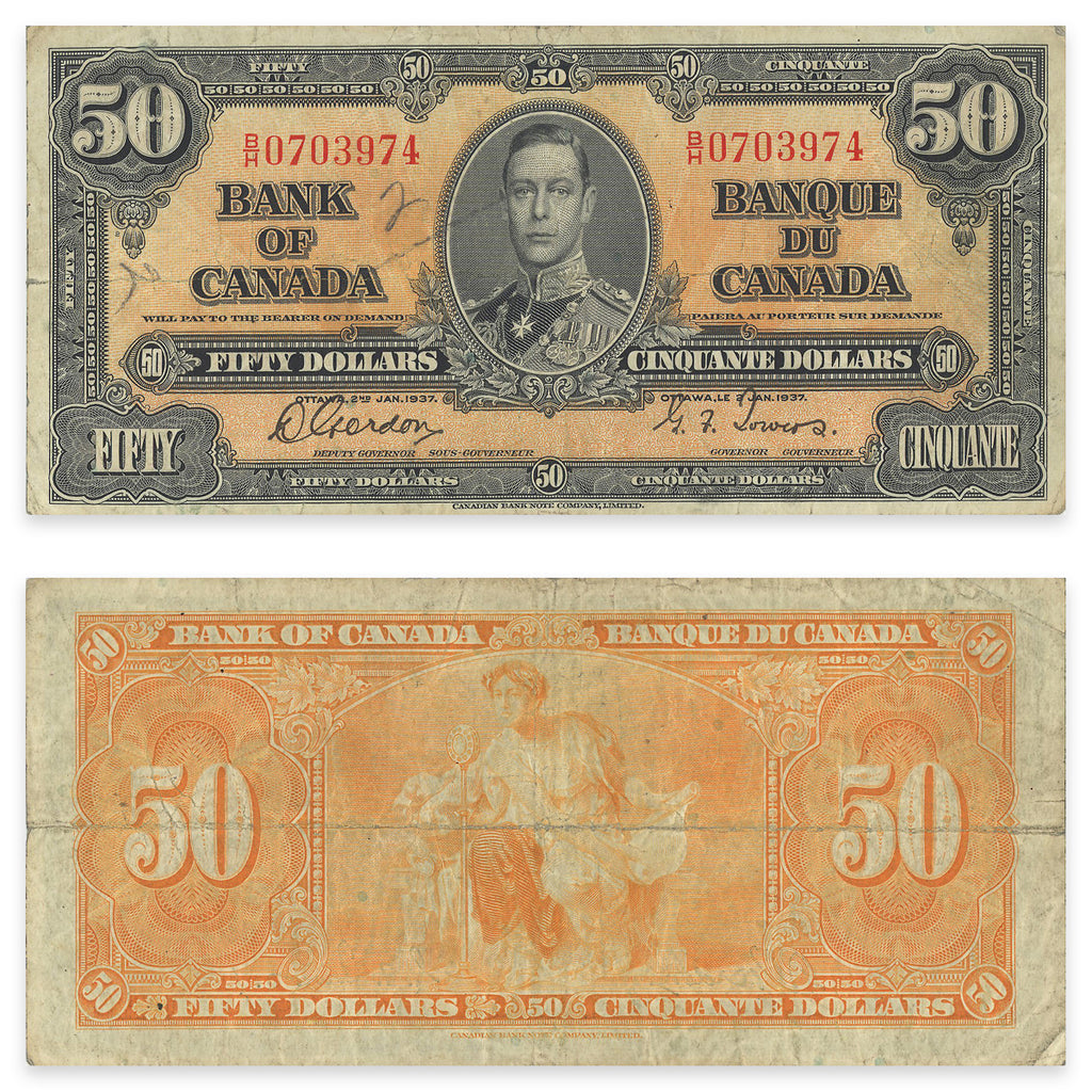 $50 1937 BC-26b Gordon-Towers Prefix B/H VG-8