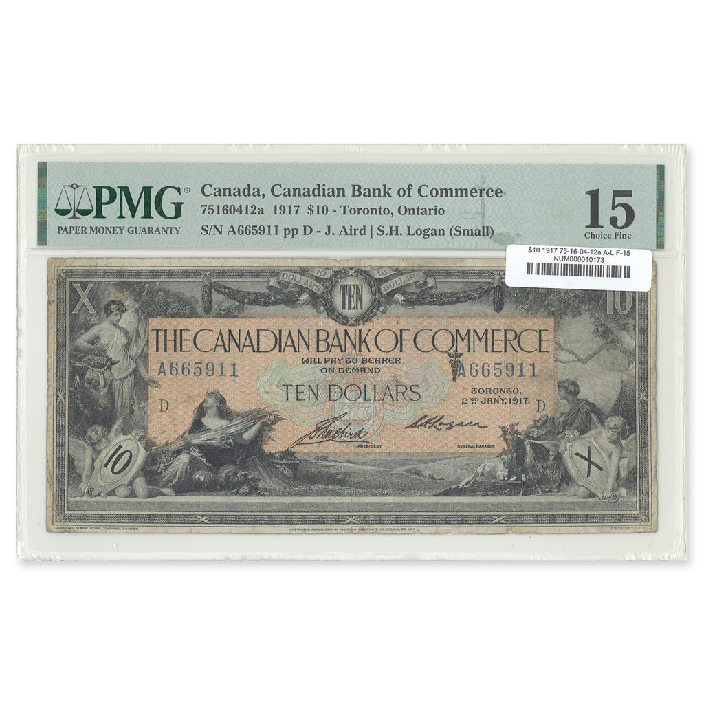 $10 1917 75-16-04-12a Canadian Bank of Commerce Aird-Logan Prefix A/J PMG F-15