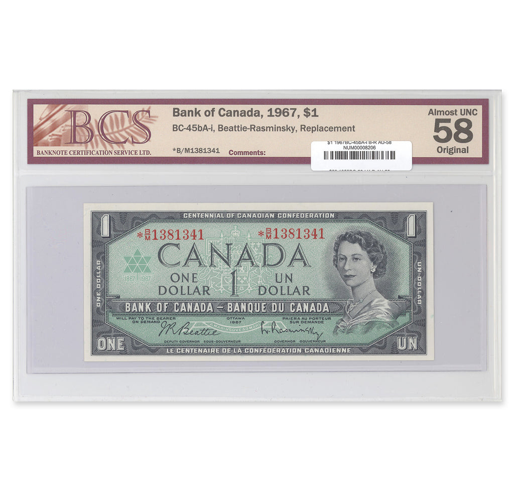 $1 1967 BC-45bA-i Beattie-Rasminsky Prefix *B/M BCS AU-58 Original