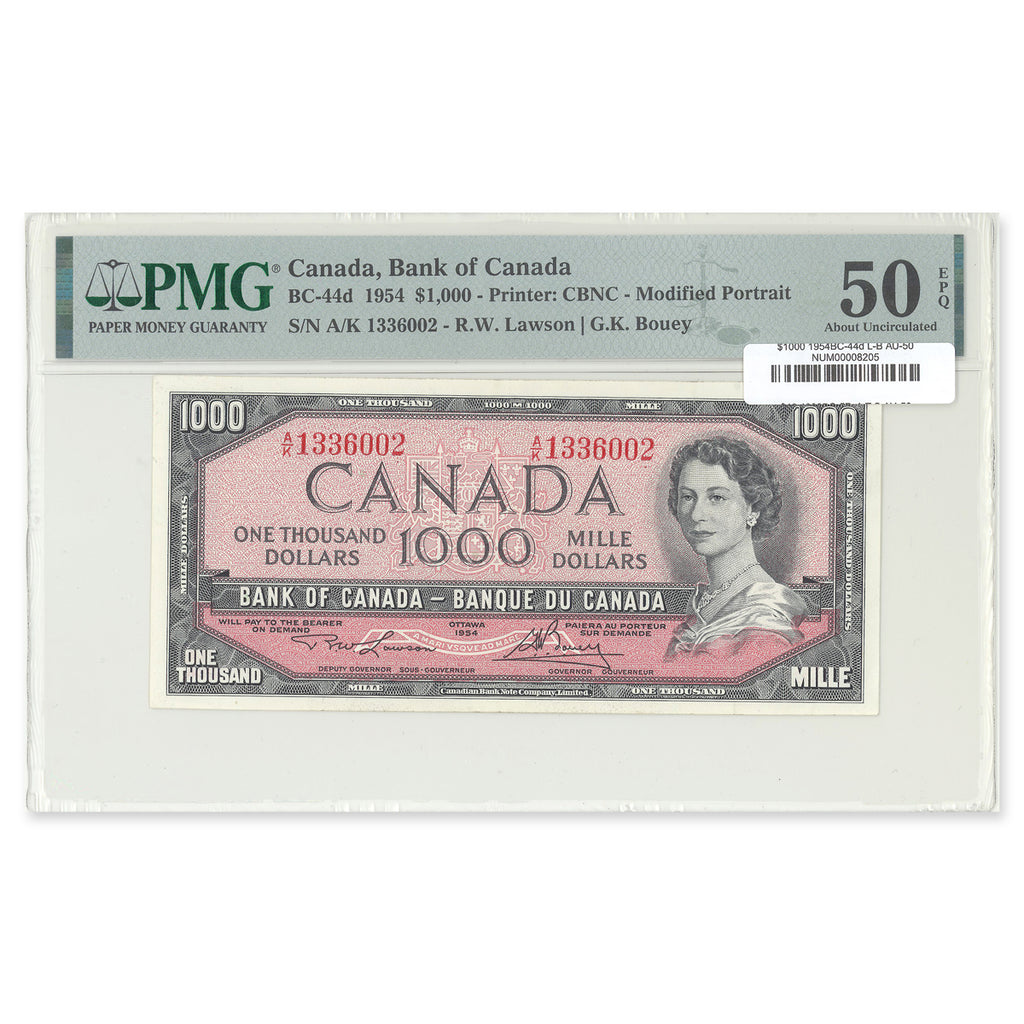 $1000 1954 Modified Series BC-44d Lawson-Bouey Prefix A/K PMG AU-50 EPQ