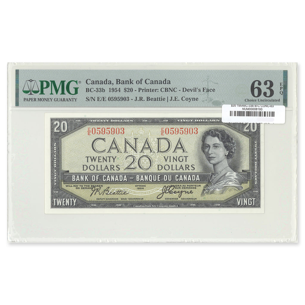 $20 1954 Devil's Face Series BC-33b Beattie-Coyne Prefix E/E PMG CUNC-63 EPQ