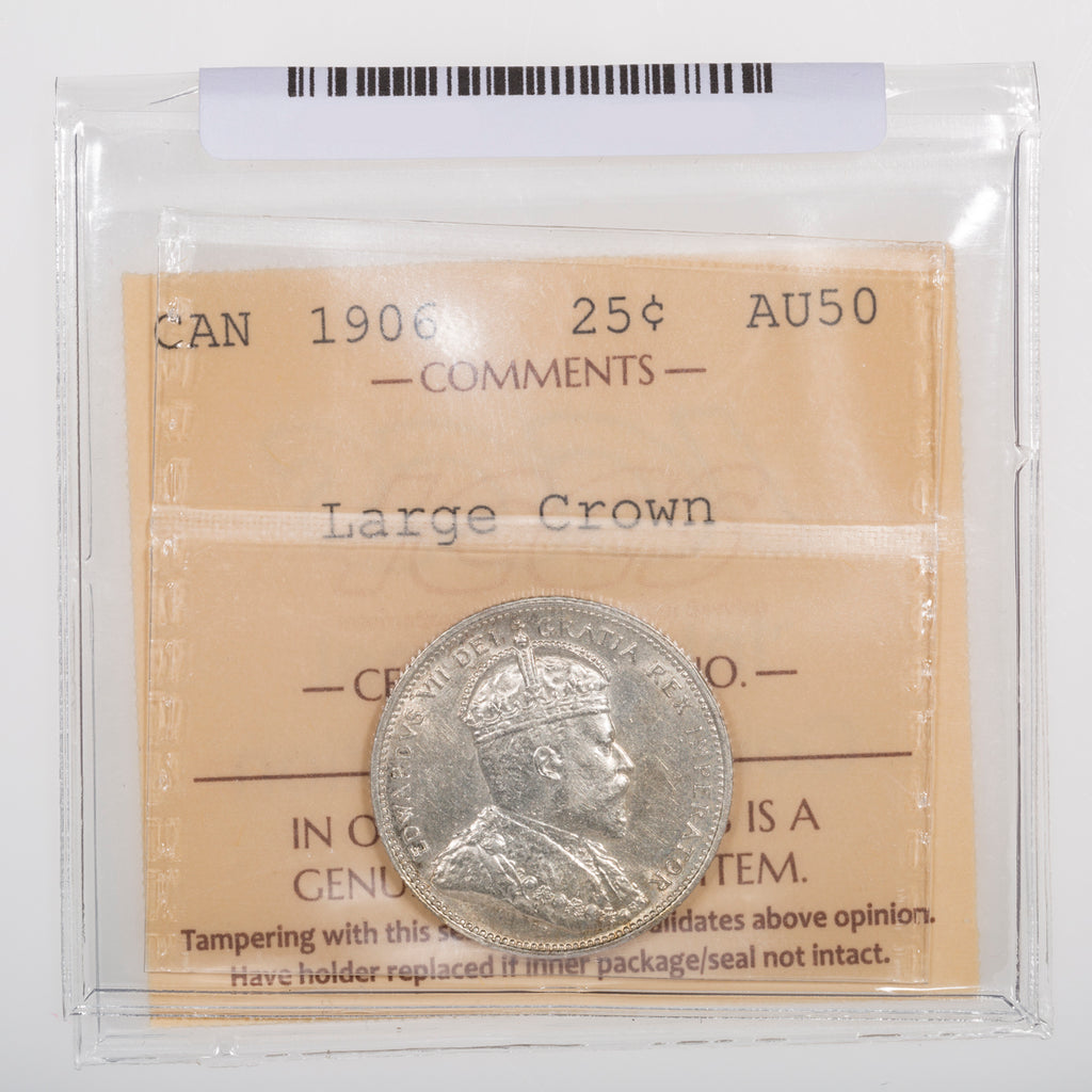 25 Cent 1906 Large Crown ICCS AU-50