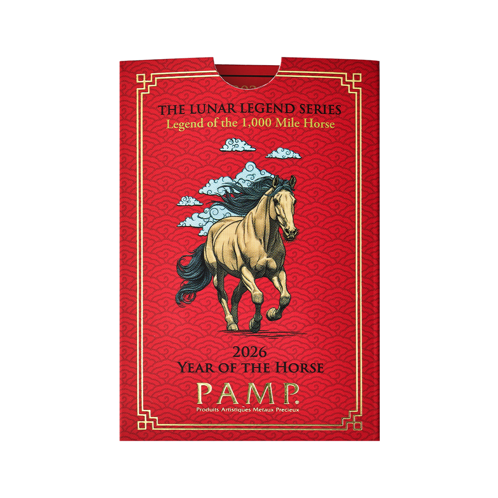 Struck in .999 fine silver, the bar beautifully captures the power, speed, and spirit of this iconic creature—symbolizing perseverance, strength, and mythical might. It serves as both a meaningful keepsake for the 2026 Lunar New Year and a striking addition to any precious metal collection.