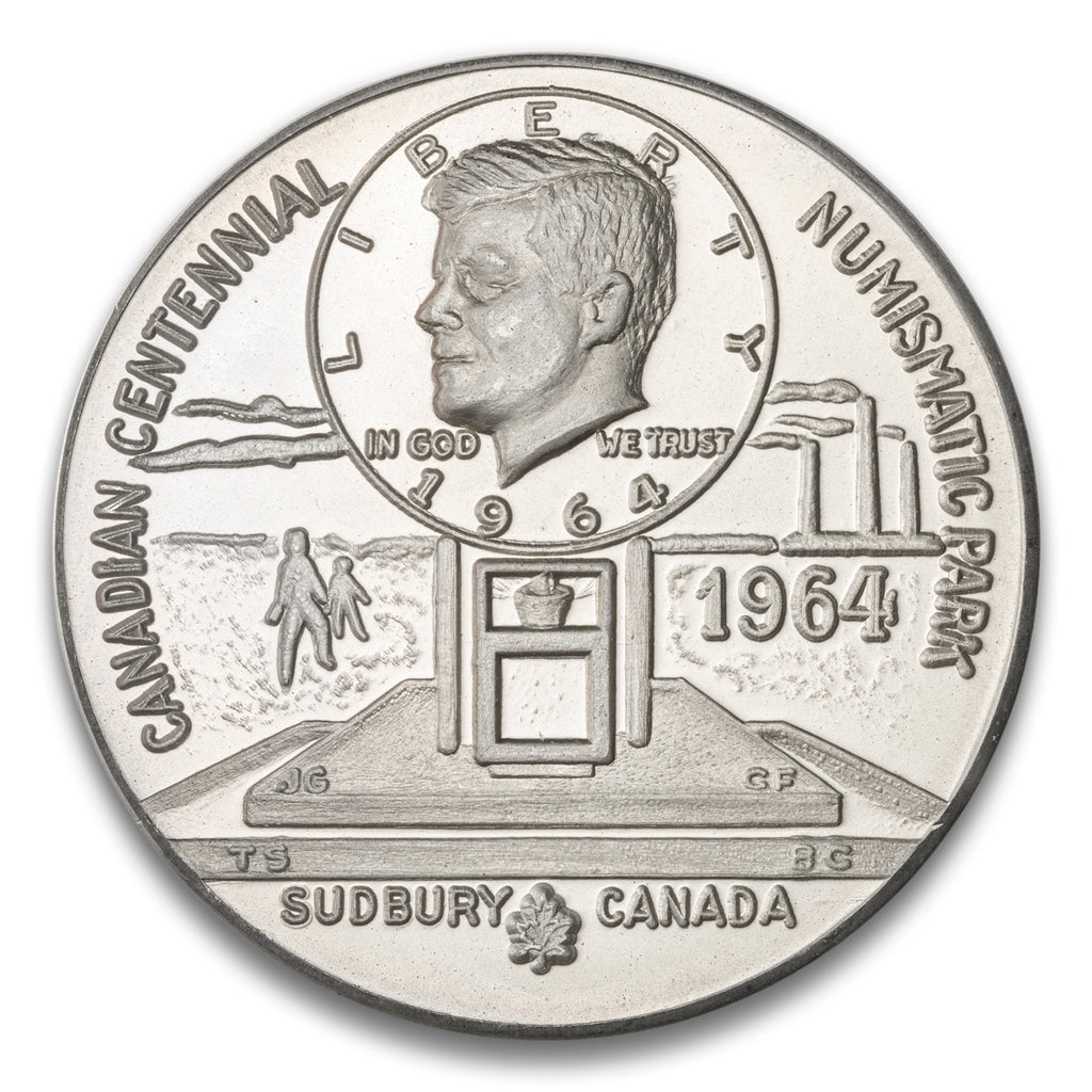 John F Kennedy - NS Canada Centennial Numismatic Park - Sudbury, ON Base medal 1964
