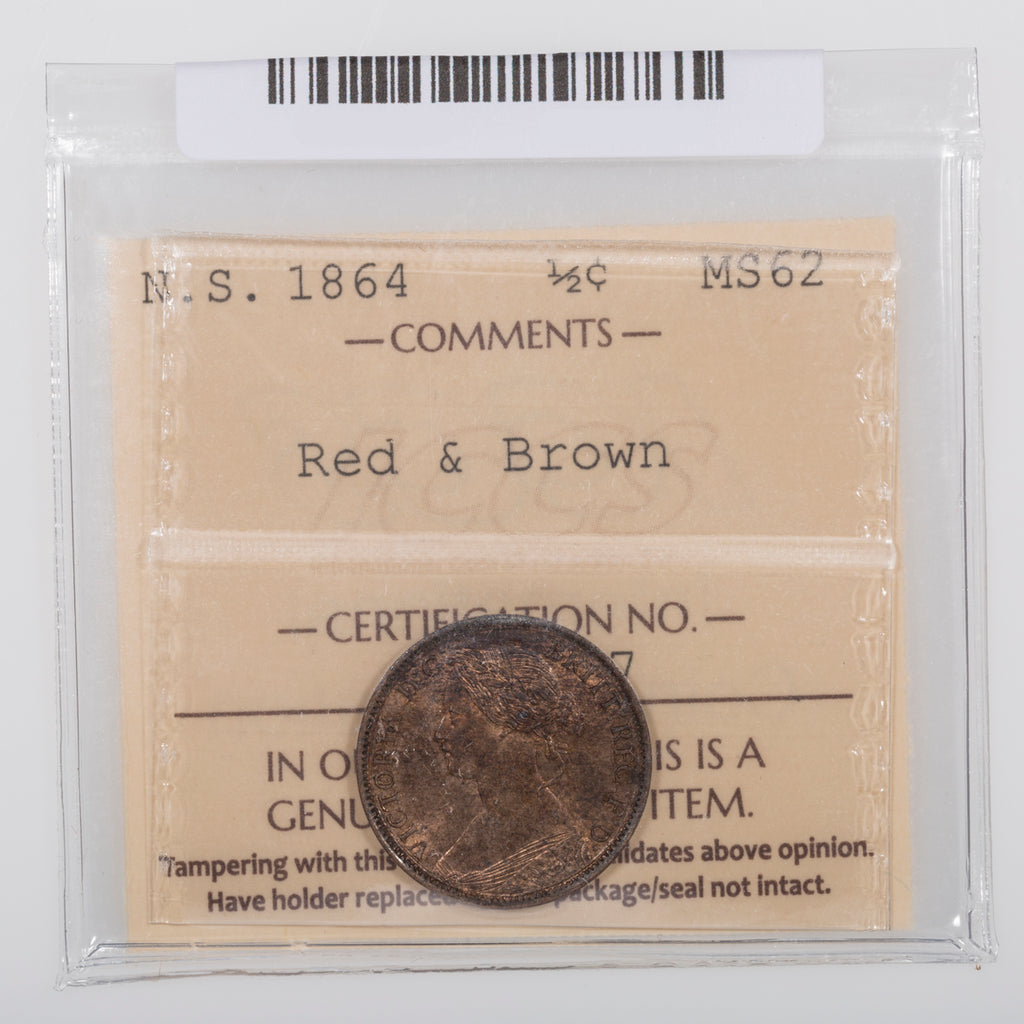 NS Half Cent 1864 ICCS MS-62 Red & Brown