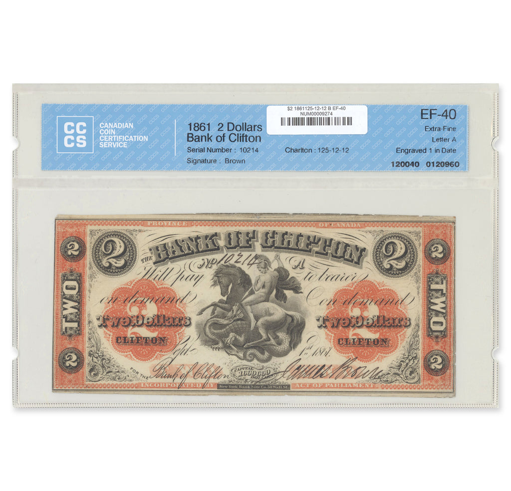 $2 1861 125-12-12 Bank of Clifton CCCS EF-40