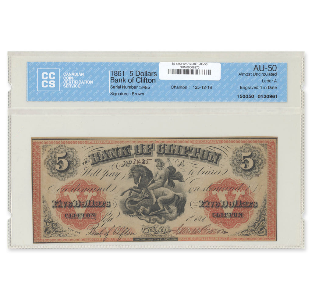 $5 1851 125-12-18 Bank of Clifton CCCS AU-50