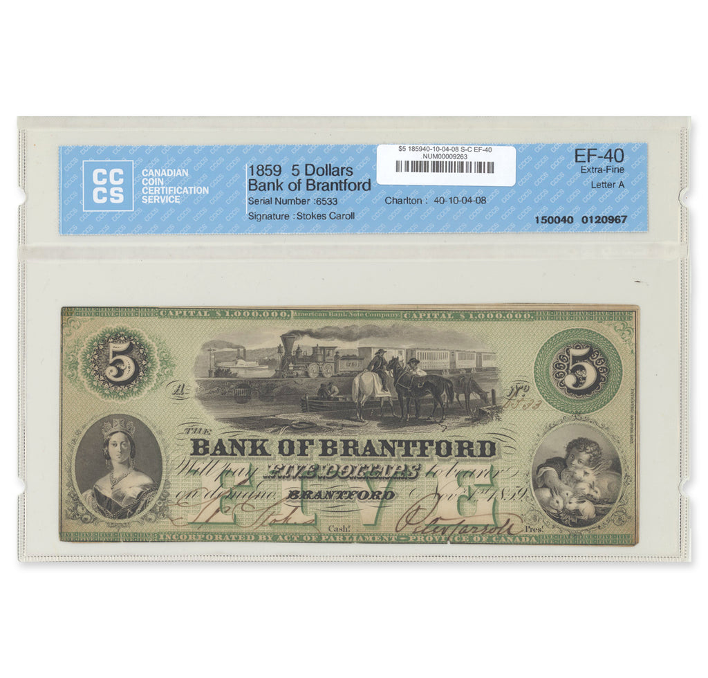 $5 1859 40-10-04-08 Bank of Brantford Stokes-Carroll CCCS EF-40