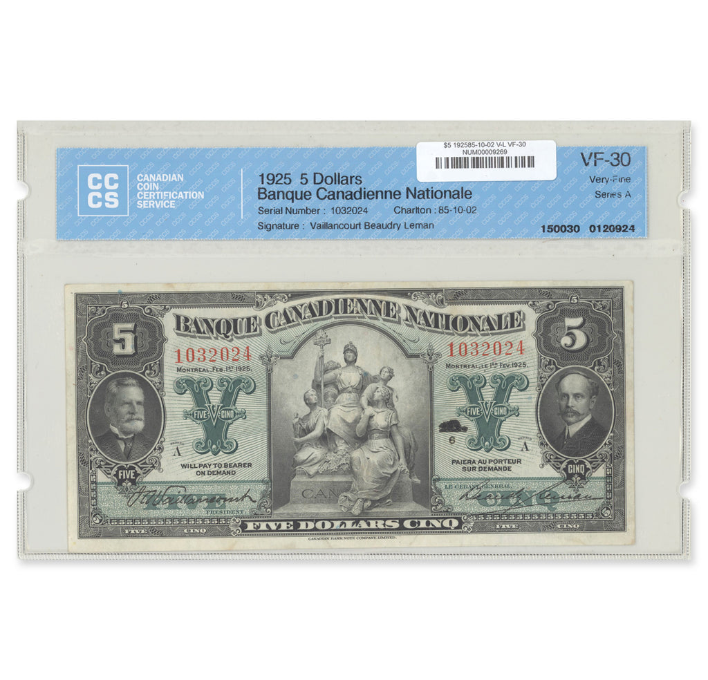 $5 1925 85-10-02 Banque Canadienne National Vaillancourt-Leman CCCS VF-30