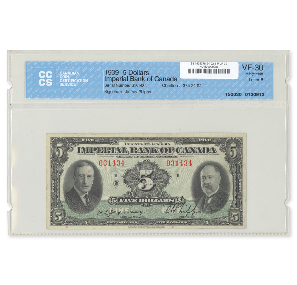 $5 1939 375-24-02 Imperial Bank of Canada Jaffray-Phipps CCCS VF-30
