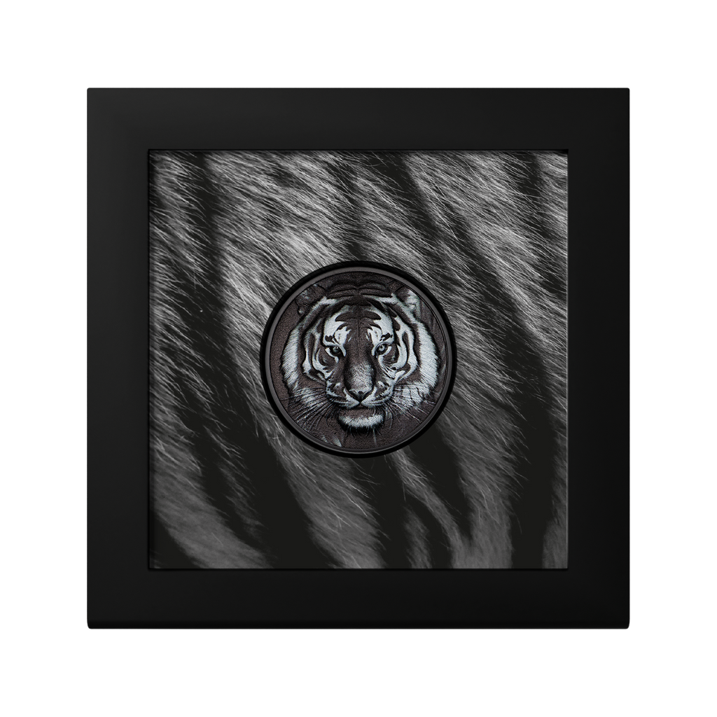 Powerful, fearless, and deeply symbolic, the tiger has long represented strength, courage, and independence across cultures. This exceptional 1 oz silver coin brings that spirit to life through an extraordinary obsidian-black finish, showcasing the tiger in a dramatic new light.