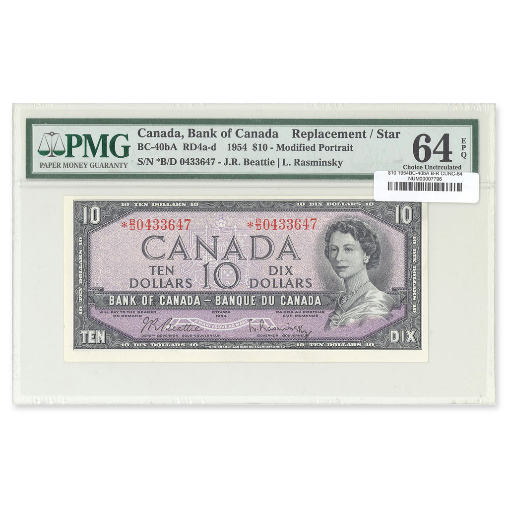 $10 1954 Modified Series BC-40bA Beattie-Rasminsky Prefix *B/D PMG CUNC-64