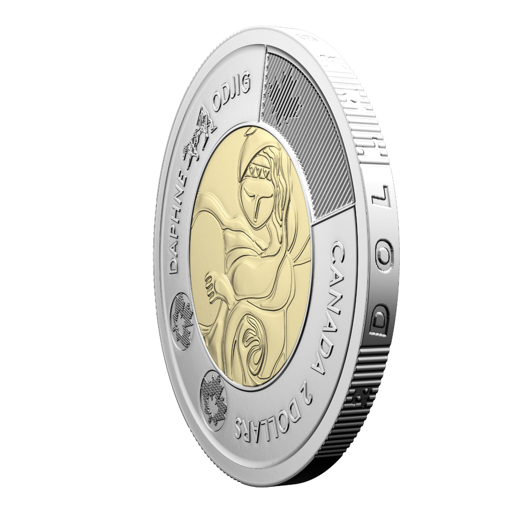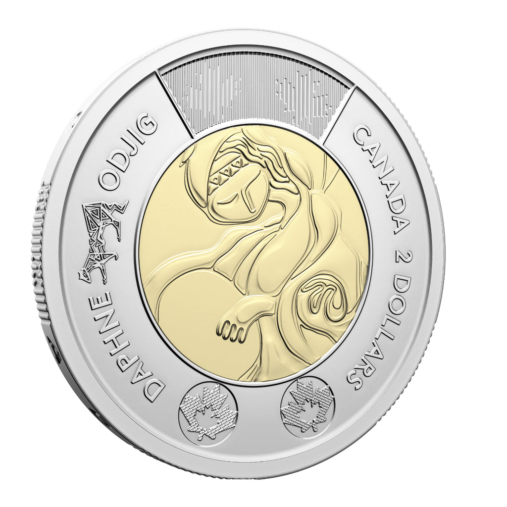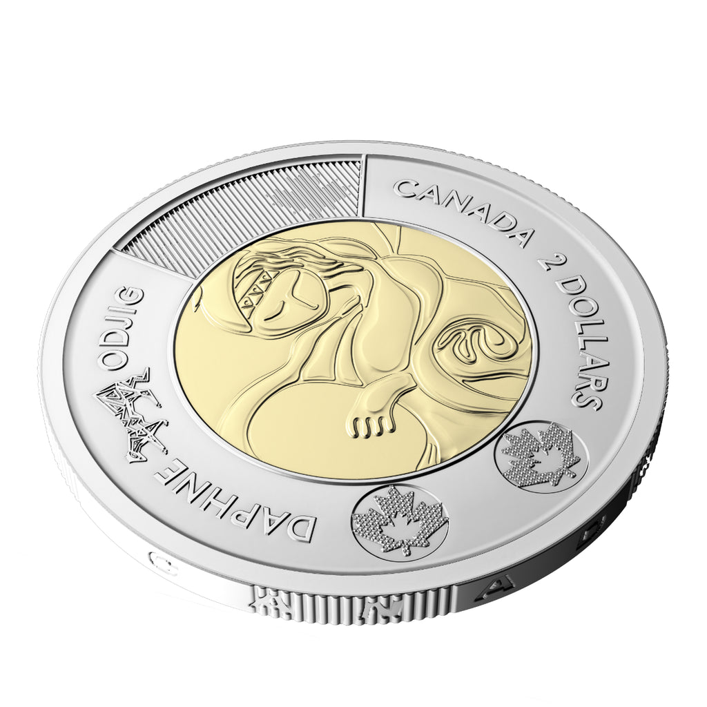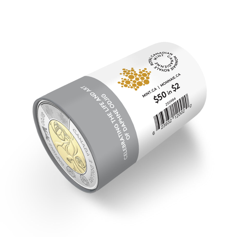 The recipient of some of Canada’s highest honours, and the first First Nations woman artist to be represented on a Canadian circulation coin, Daphne Odjig is honoured on all 25 coins contained in this Special Wrap Roll. Each $2 coin’s engraved reverse pays tribute to Odjig’s legacy as a creative force for change.