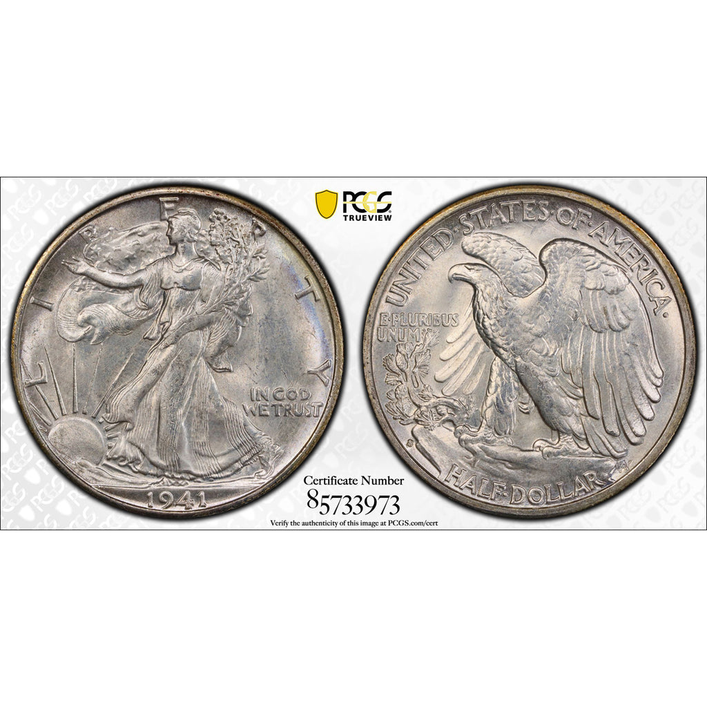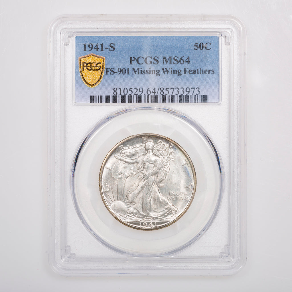 US 50 Cent Walking Liberty 1941S FS-901 Missing Wing Feathers PCGS MS-64