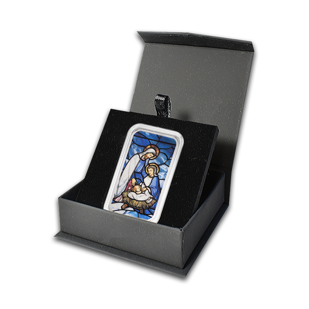 Designed in a vivid, colourized style inspired by traditional church stained-glass windows, this bar captures the sacred moment of Christ’s birth in breathtaking detail. The Holy Family is depicted with warmth and reverence, making this piece both a meaningful keepsake and a heartfelt Christmas gift.