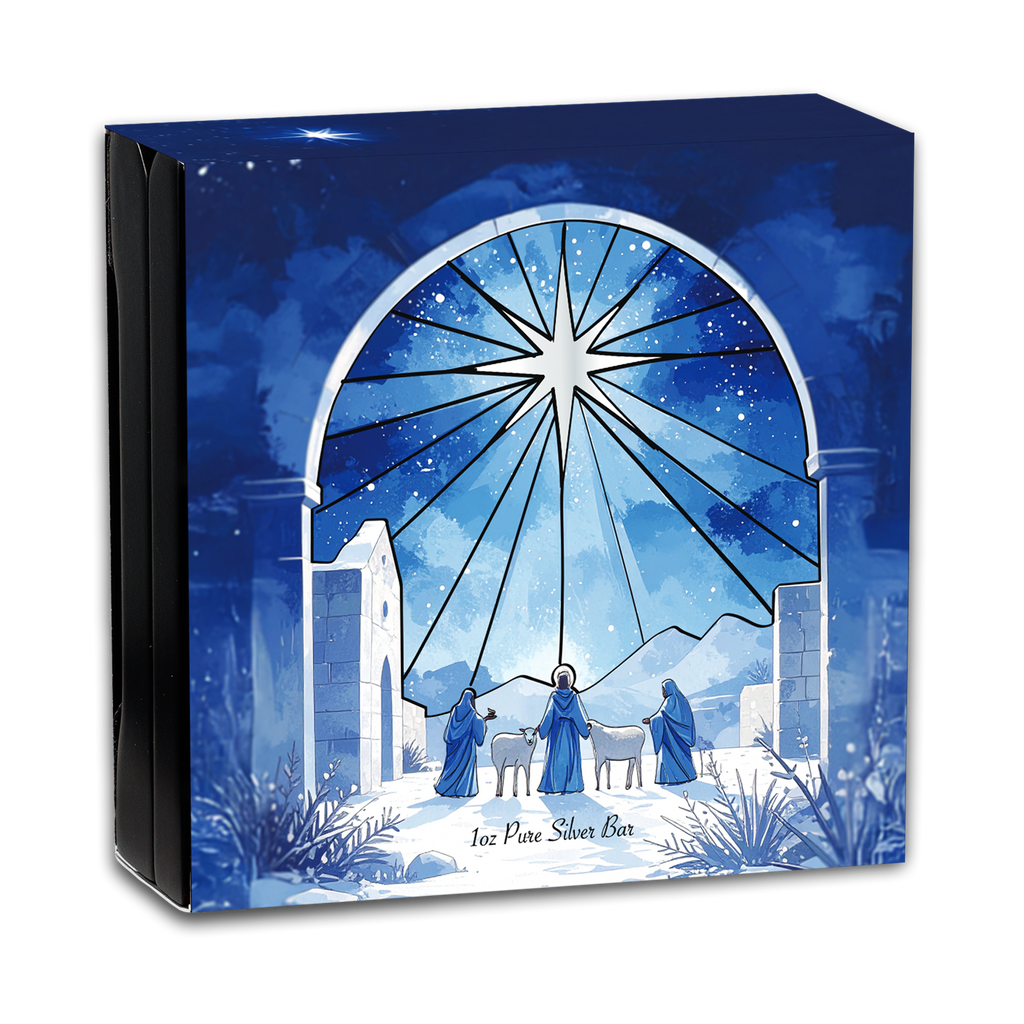 The reverse features a radiant cross illuminated by the Star of Bethlehem—the guiding light that led the Magi to Jesus. This symbolic design adds depth, beauty, and spiritual significance to the bar, making it a standout addition to any holiday collection.