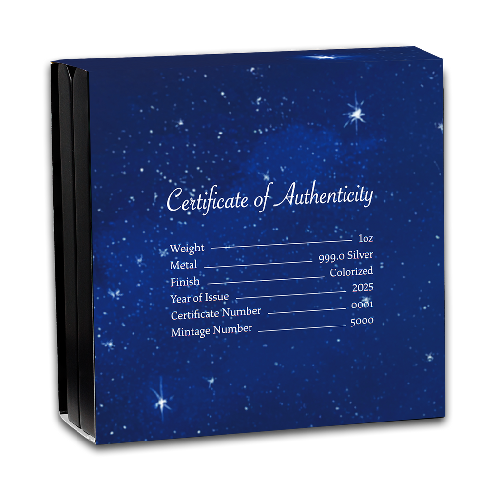 Each pure silver bar comes elegantly presented in a magnetic-closure display case with a festive gift sleeve, and is securely packaged within a protective capsule nestled in a foam tray and box.
