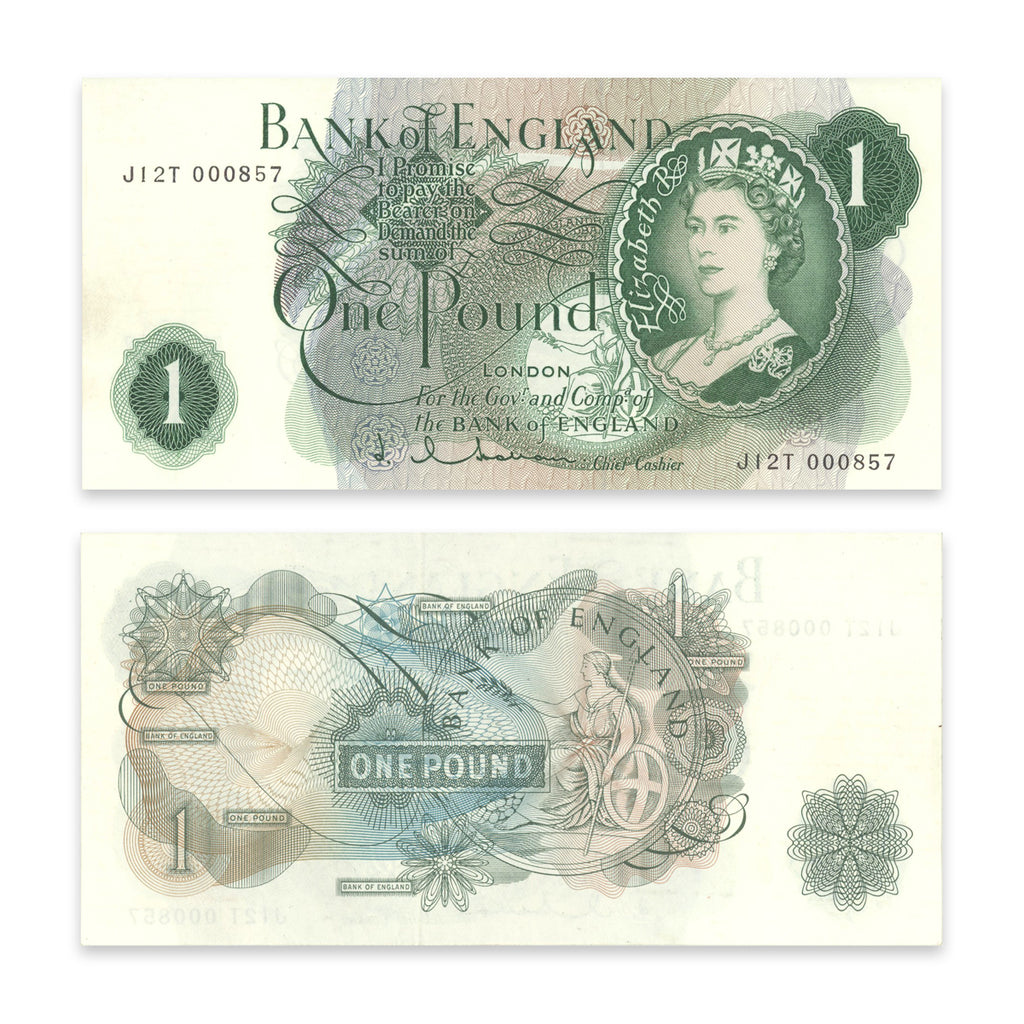 Great Britain 1 Pound ND (1962-66) P# 374c Low Serial UNC-62