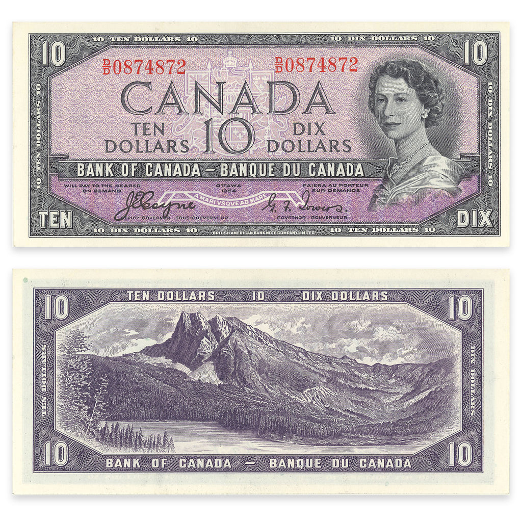 $10 1954 Devil's Face Series BC-32a Coyne-Towers Prefix D/D AU-55