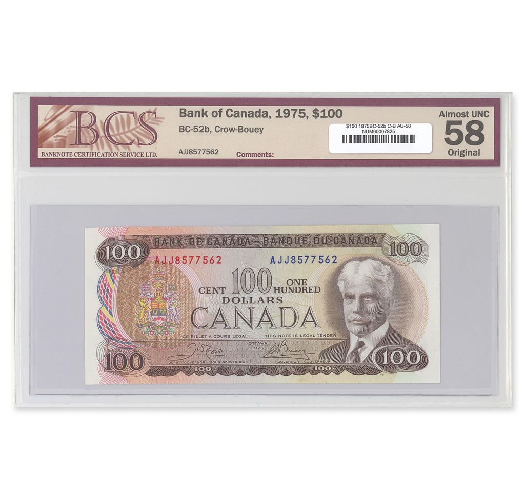 $100 1975 BC-52b Crow-Bouey Prefix AJJ BCS AU-58