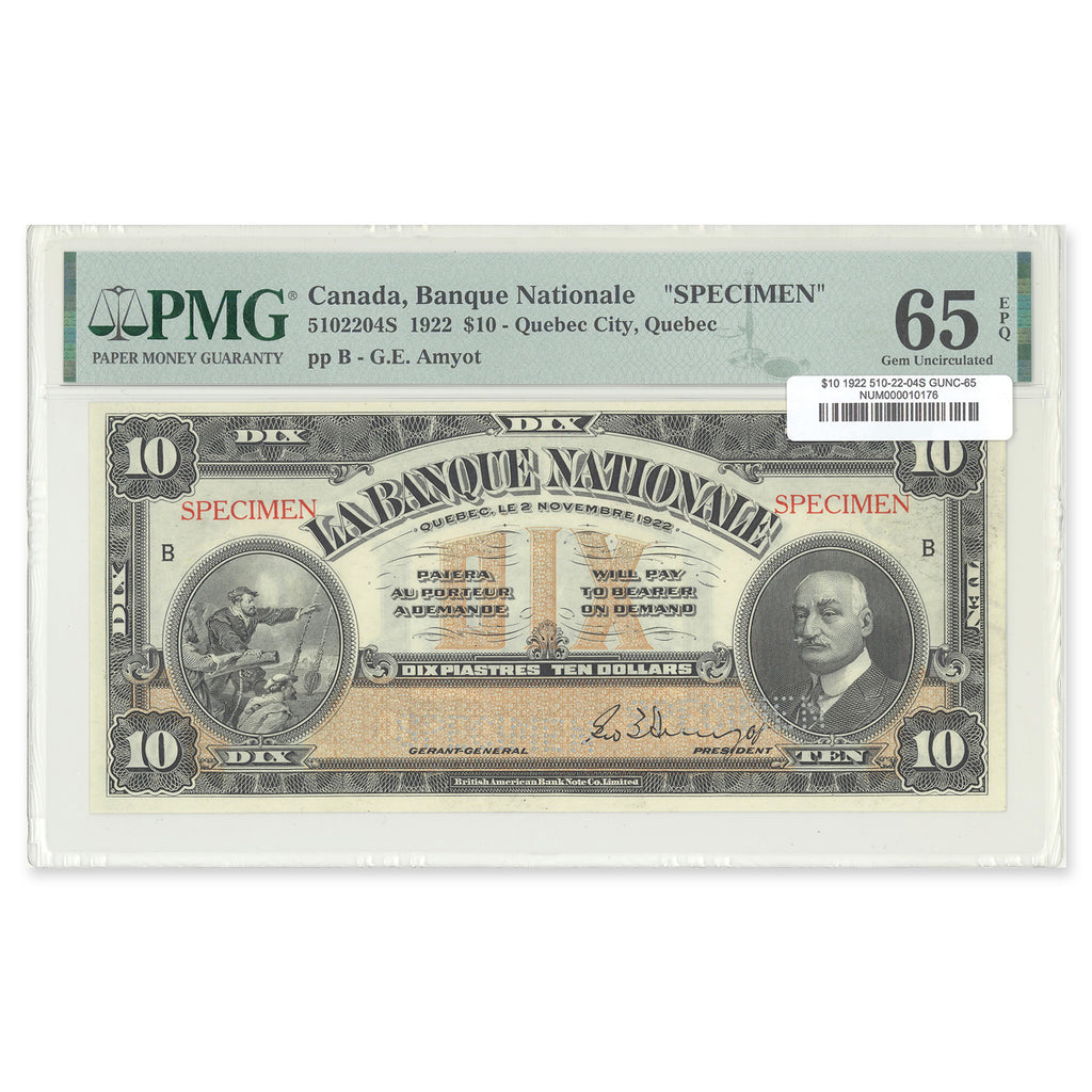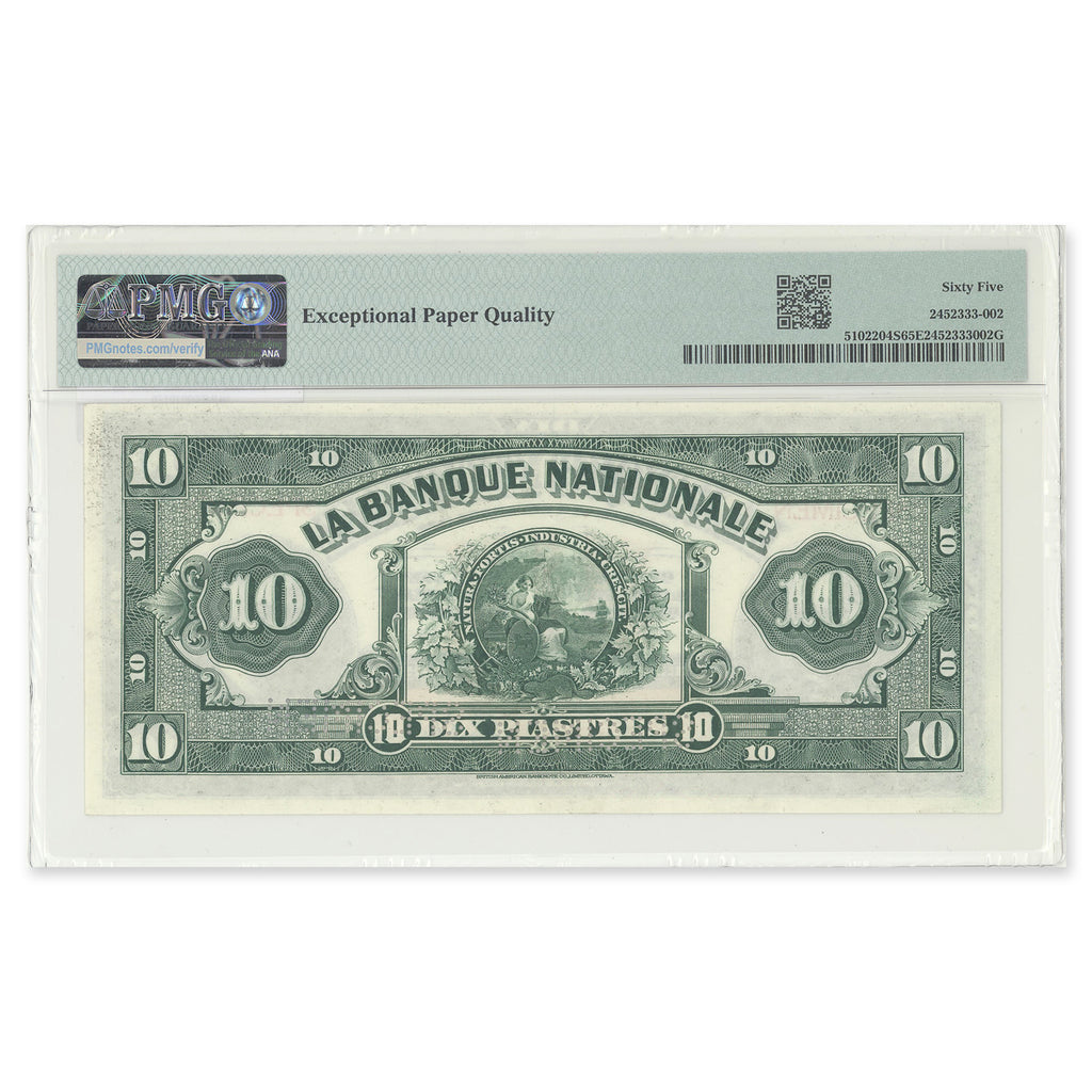 $10 1922 510-22-04S Le Banque Nationale PMG GUNC-65 EPQ