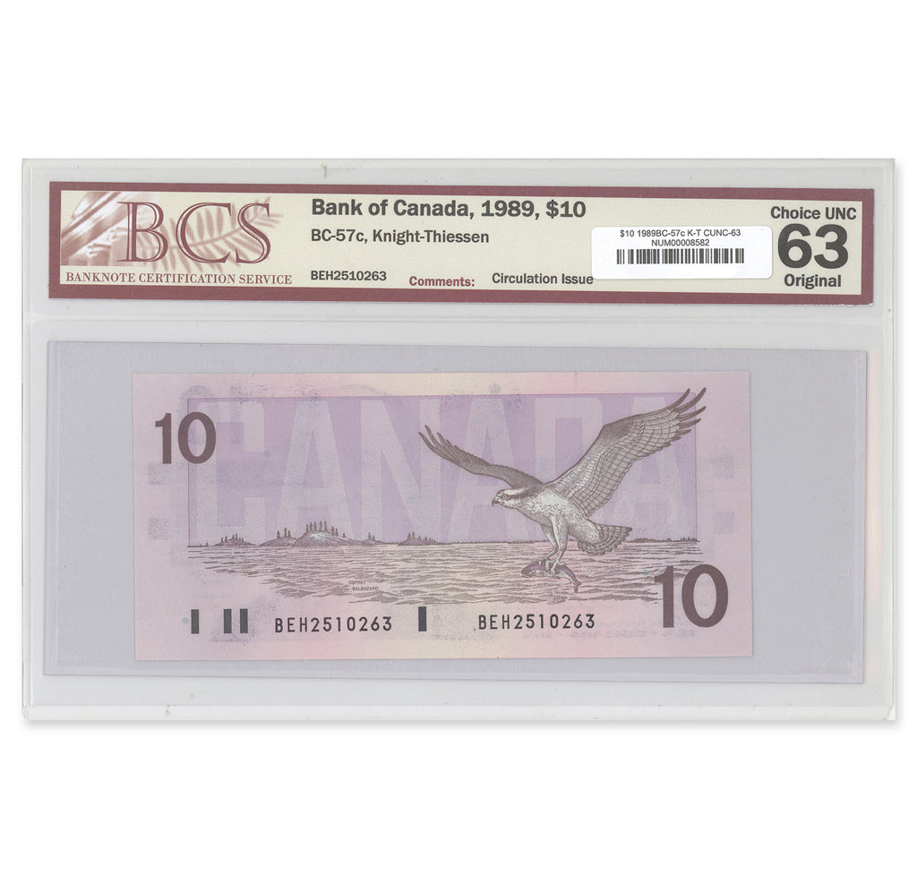 $10 1989 BC-57c Knight-Thiessen Prefix BEH BCS CUNC-63 Original