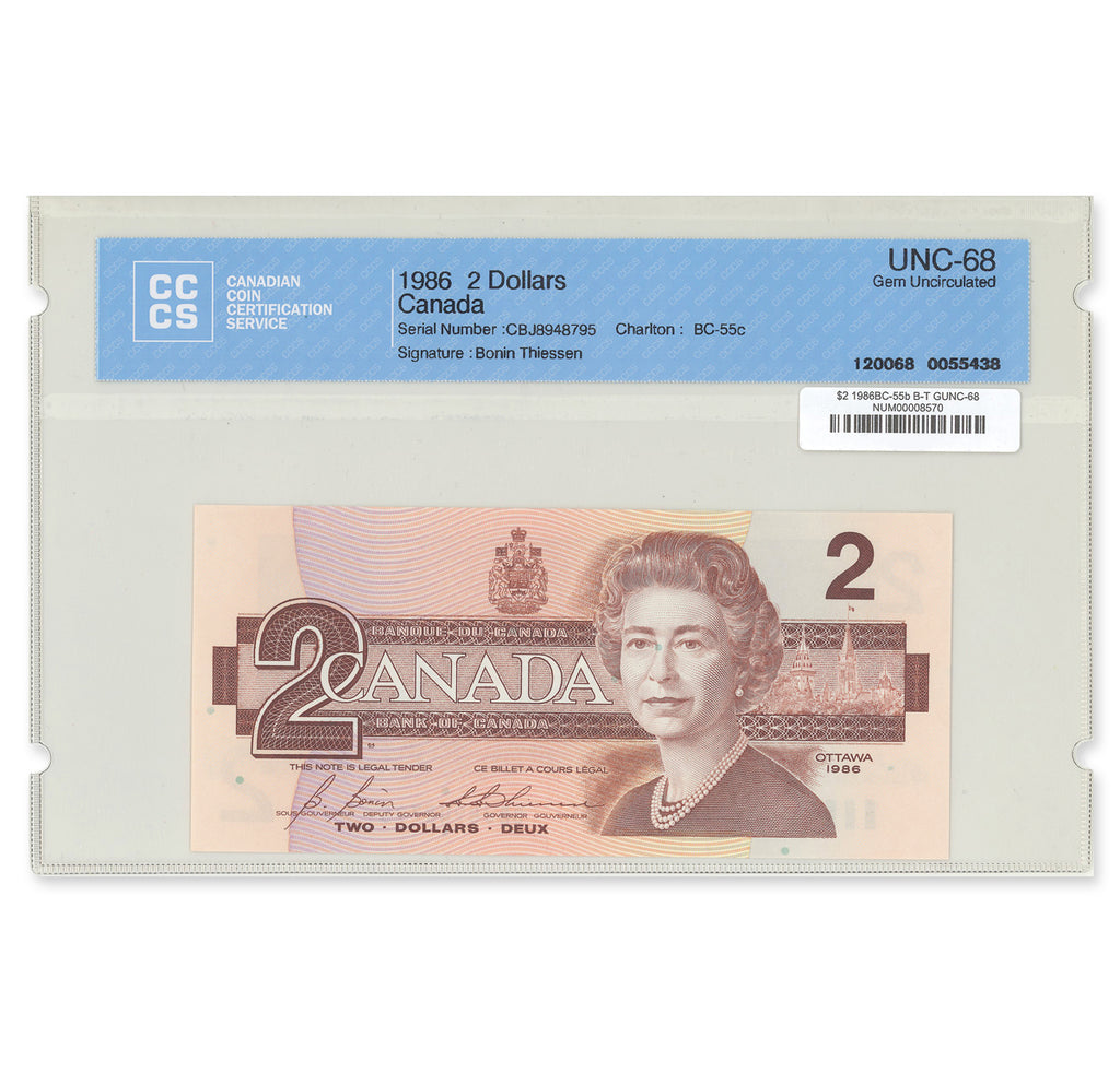 $2 1986 BC-55b Bonin-Thiessen Prefix CBJ CCCS GUNC-68