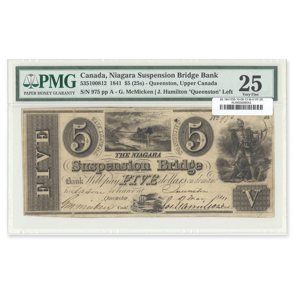 Front Design: Niagara suspension bridge; steamboat below/Indian with drawn bow