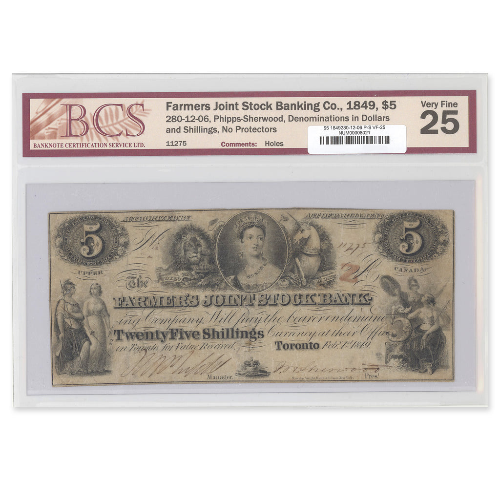 $5 1849 280-12-06 Farmers Joint Stock Banking Co. Phipps-Sherwood BCS VF-25