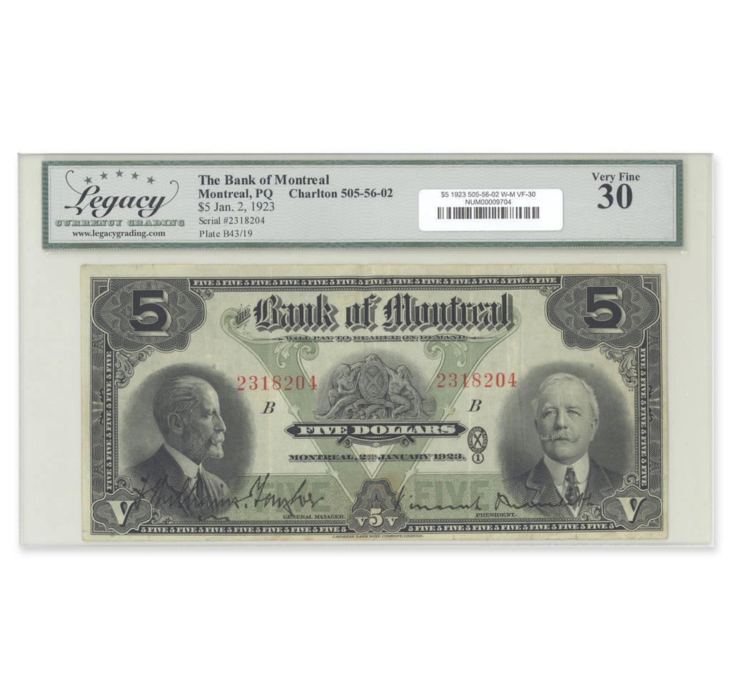 $5 1923 505-56-02 The Bank of Montreal Williams-Taylor-Meredith Legacy VF-30