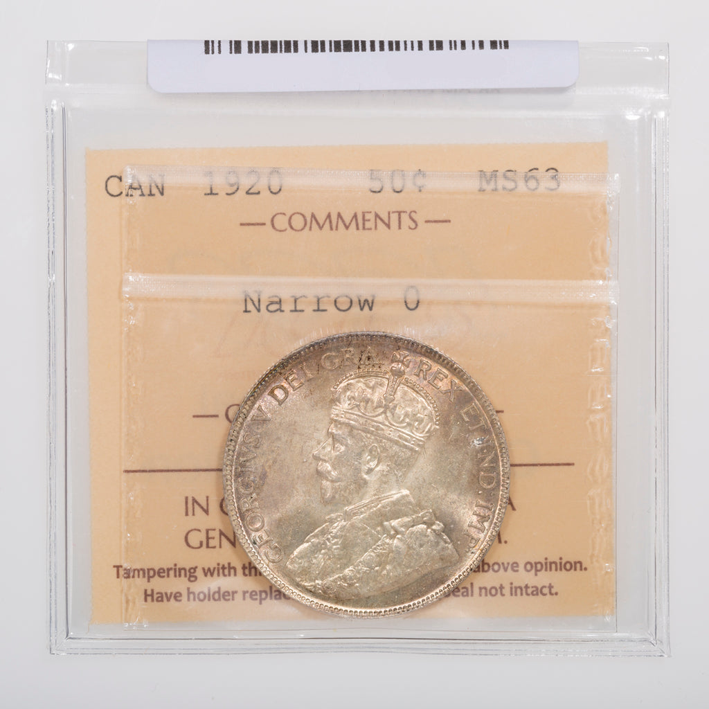 50 Cent 1920 Narrow 0 ICCS MS-63