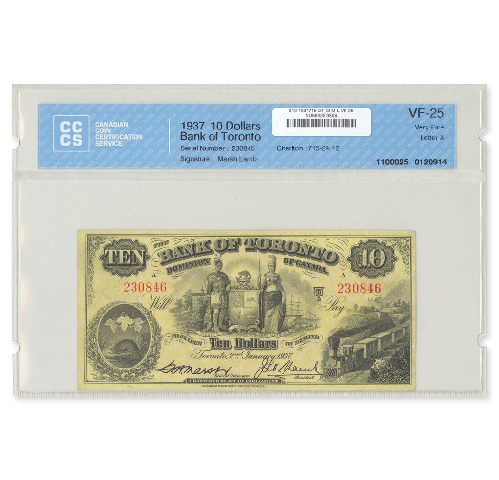 $10 1937 715-24-12 The Bank of Toronto Marsh-Lamb CCCS VF-25