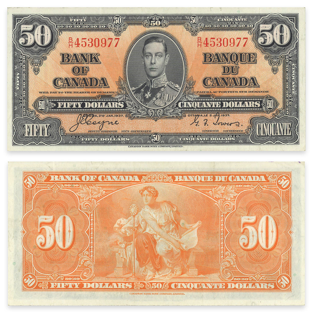 $50 1937 BC-26c Coyne-Towers Prefix B/H VF-30