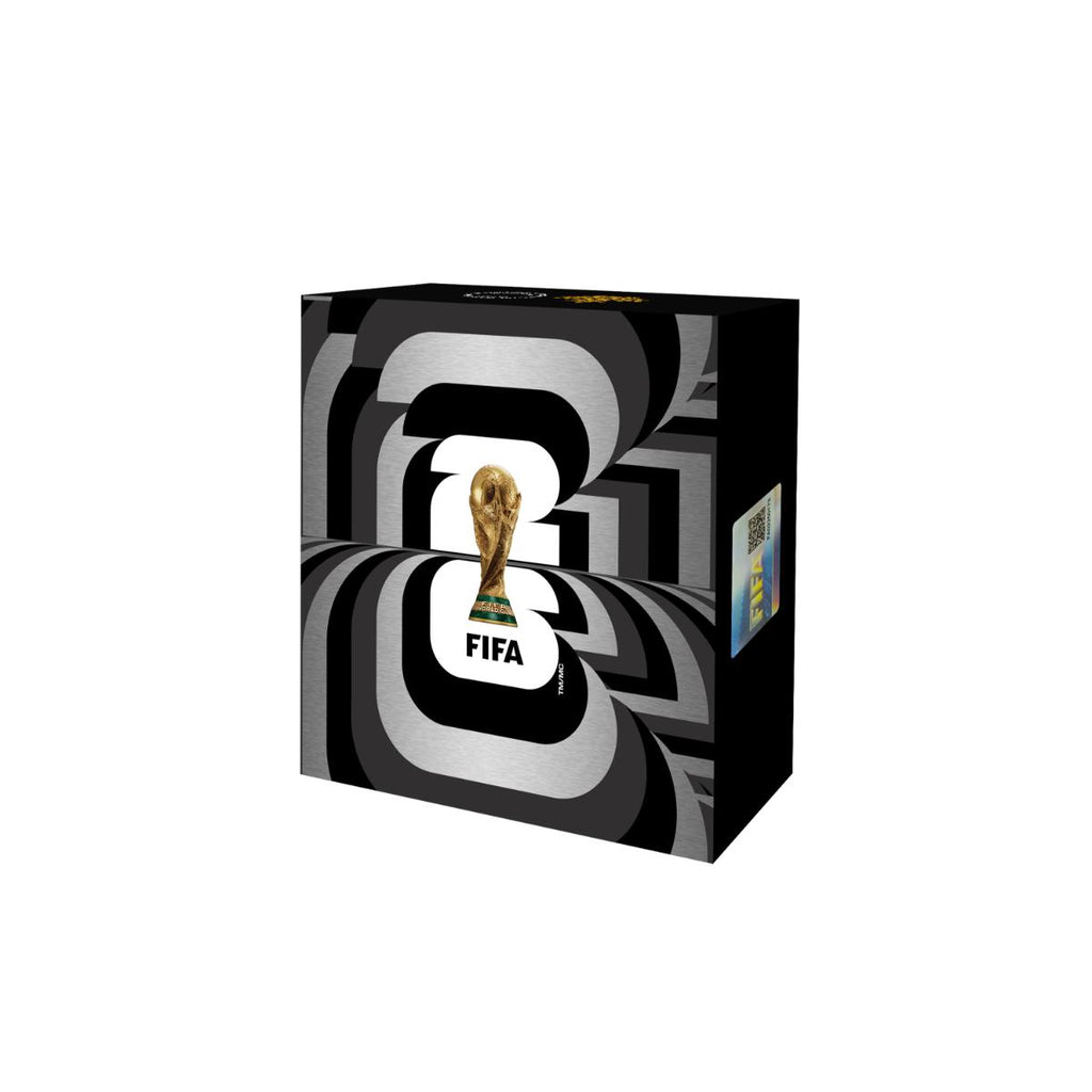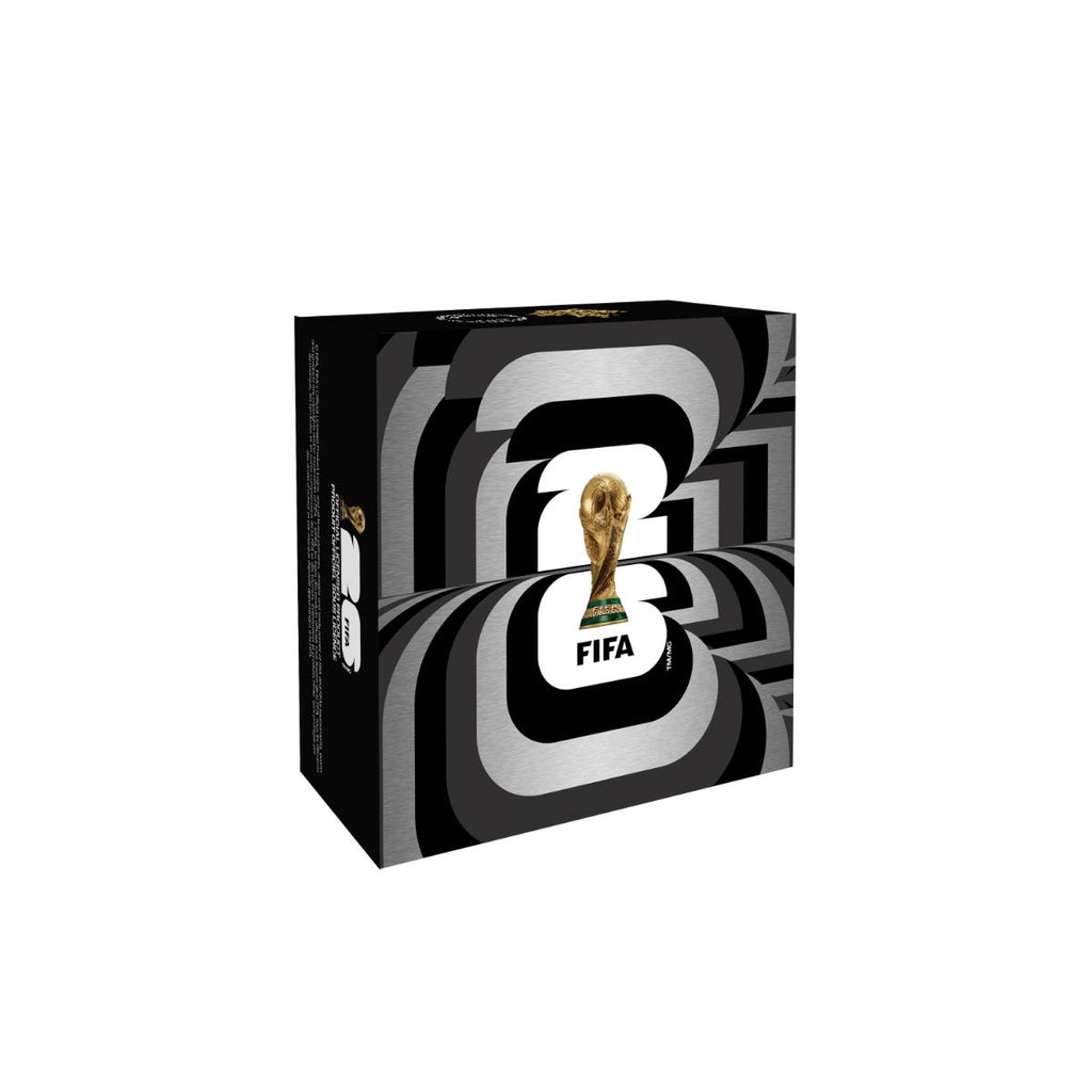 On the coin’s reverse, a map of North America is overlaid with a classic football (soccer ball) pattern, taking on the appearance of a globe and welcoming the world to the tournament, while three players are depicted in dynamic motion, representing the passion that connects fans and players on the pitch, in the stands, and around the world.