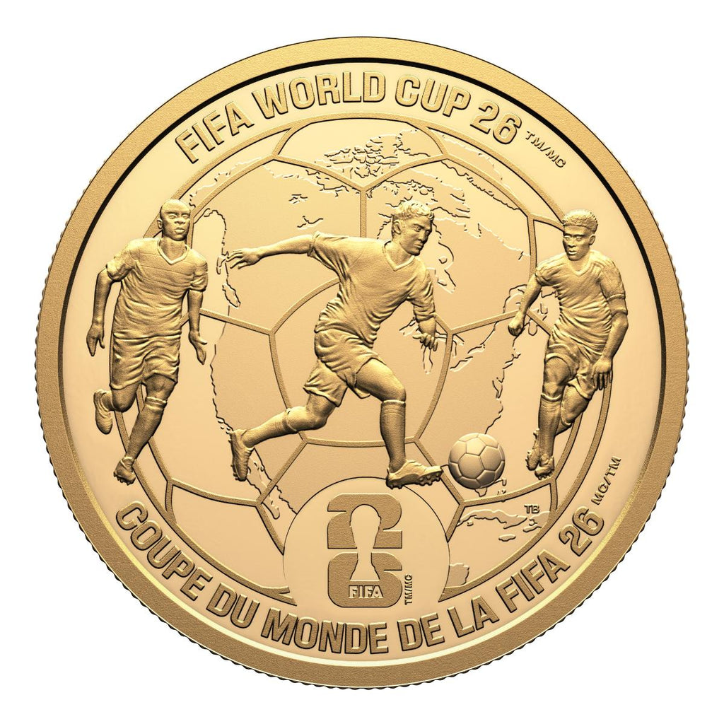 This 1 oz. 99.99% pure gold coin celebrates the three host countries of Canada, Mexico and the United States coming together for the first ever three-country FIFA World CupTM/MC. GST/HST exempt.