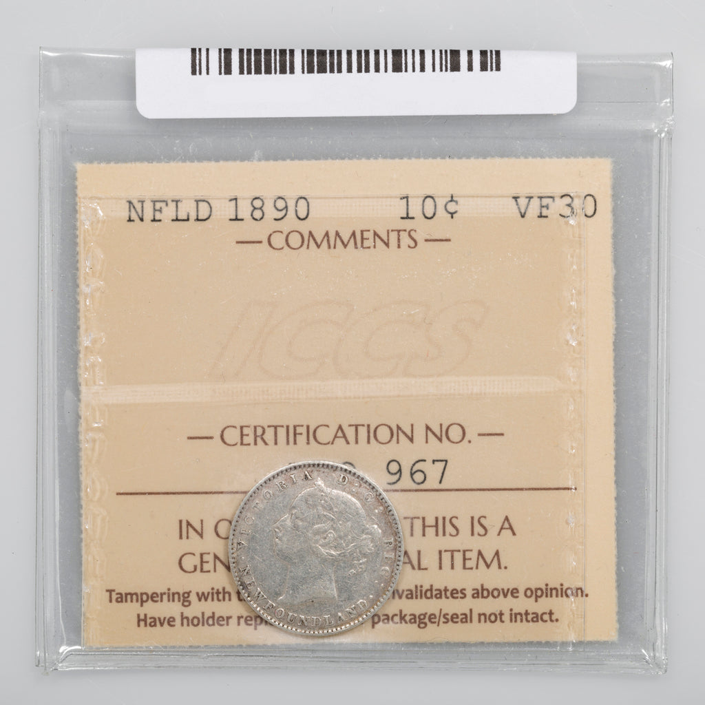 NFLD 10 Cent 1890 ICCS VF-30