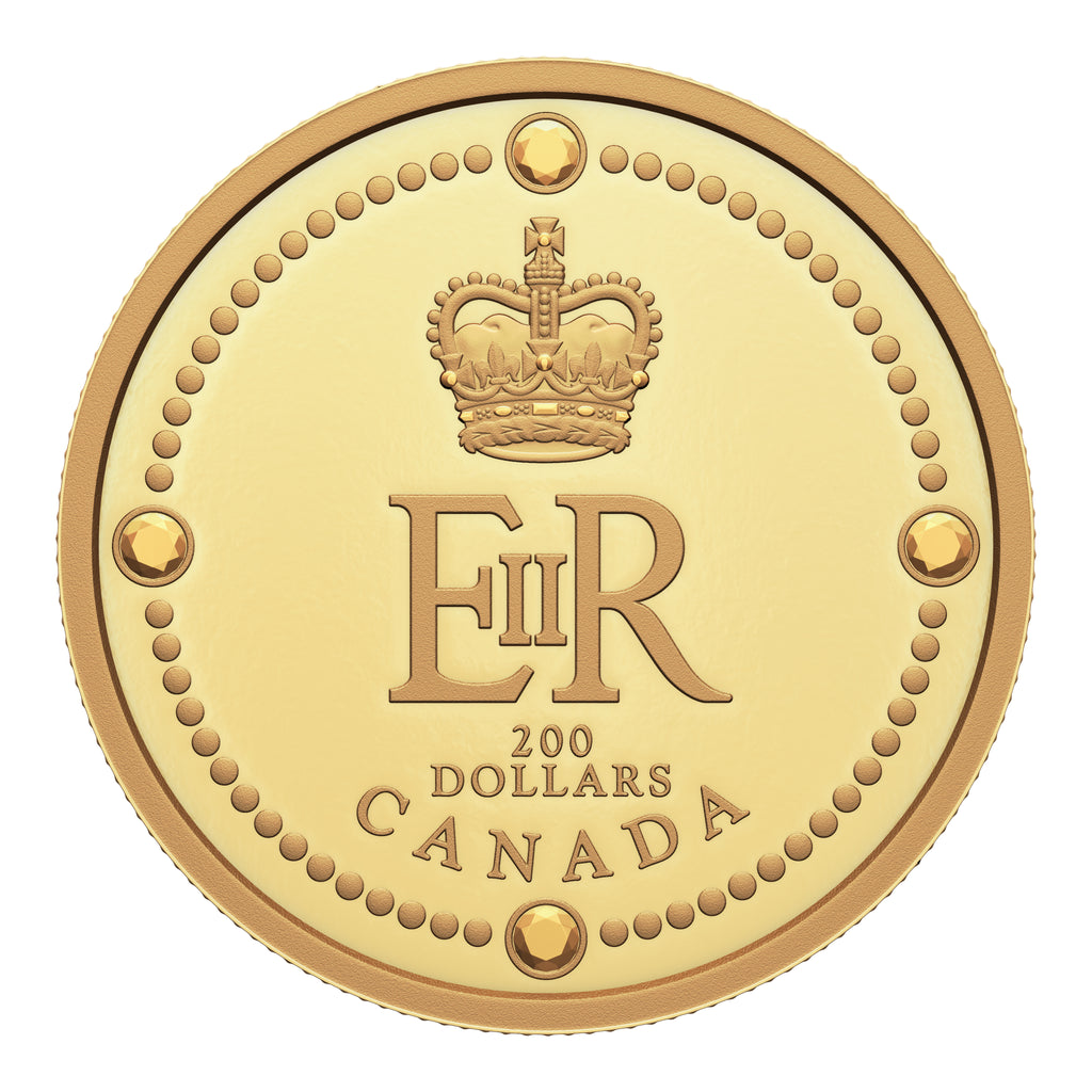 One of the most recognizable symbols of a historic reign, the Royal Cypher of Queen Elizabeth II was the monarch’s identifier, and most Canadians are used to seeing it imprinted in the insignia of orders, decorations, medals and badges. The personal device of Queen Elizabeth II was synonymous with the Crown and served as a symbol of Sovereignty in Canada for 70 years. It has been re-created and forever preserved on this one ounce 99.99% pure gold tribute to Queen Elizabeth II, the keeper of continuity who