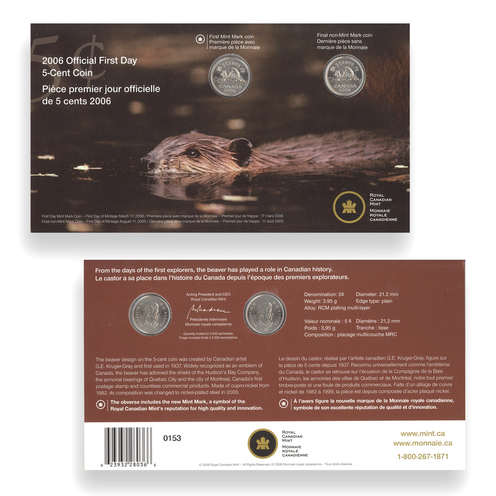 2006 5 Cent Official First Day - Coin Set