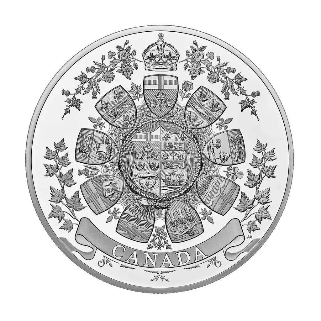 It was more than a 100 years ago that a new, distinctive coat of arms was created for Canada. But before that, a dizzying array of heraldic art celebrated and represented a young nation that had yet to come into its own. One of those concepts has been plucked from the national archives and brought to life on this fine silver kilo coin. Its design is based on a 1912 drawing of Canadian heraldic emblems. And while the historic style itself is captivating, it’s what’s missing from the composition that provides rare insight into Canada’s heraldic past. It’s an unforgettable mix of history, heraldry and art as we celebrate the 100th anniversary of the Arms of Canada.