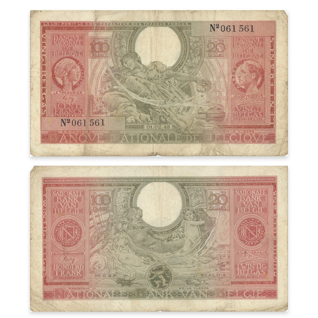 Belgium 100 Francs-20 Belgas 1943 P# 123 F-18