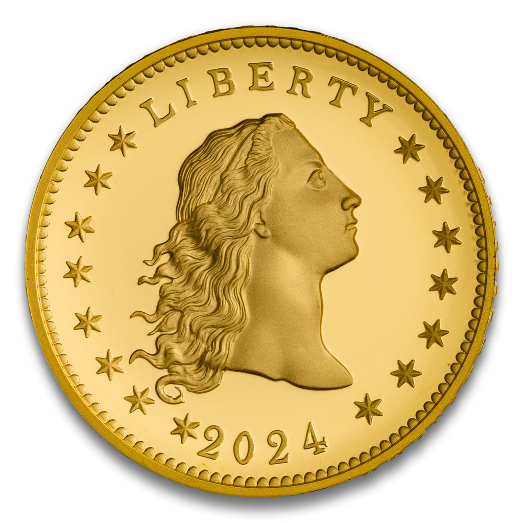 Paying homage to the Flowing Hair dollar coin, the first dollar coin issued by the US Federal Government on October 15, 1794, the United States Mint issued a 24-karat High Relief Gold Proof Coin to mark the historic event.