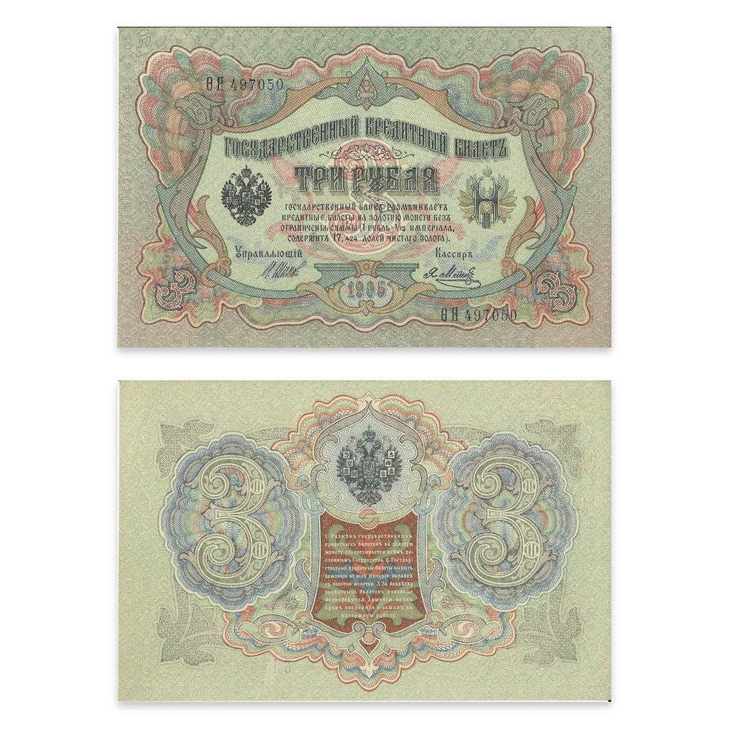 Russia 3 Rubles 1905 KM 9c UNC-60