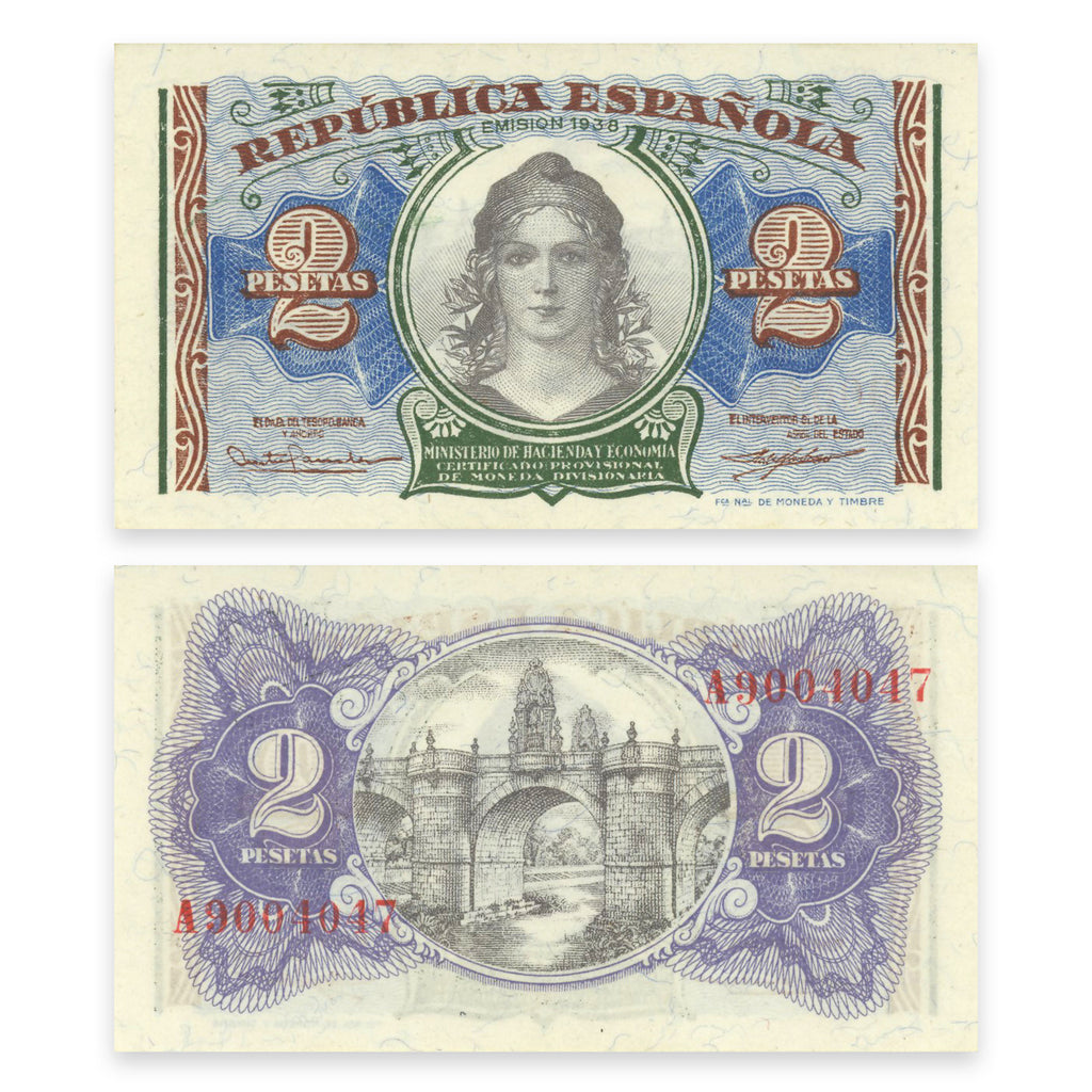 Spain 2 Pesetas 1938 P# 95 UNC-60