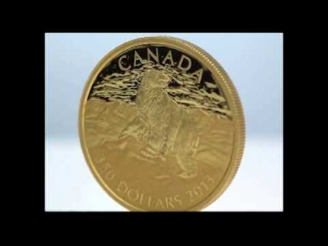 This 2013 large pure gold $350 coin is the first in a new series featuring iconic Canadian animals. This coin is certified to be 99.999% pure gold, the purest gold coin in the world, with a weight of 35 grams (well over an ounce).  Mintage of this coin is limited to just 600 pieces.  As a pure gold coin struck by the Royal Canadian Mint, this item is HST/GST exempt.