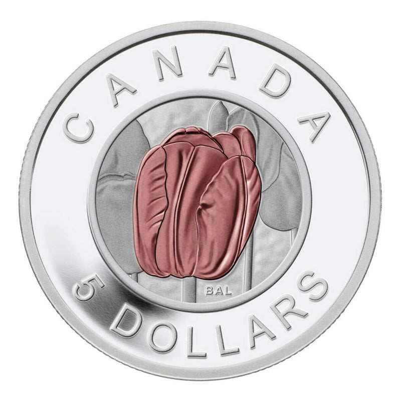 Canada's gardens are filled with a tremendous variety of flowers, but a few of them remain all-time favourites that always capture more admiring gazes than all the others. One is the tulip, and its big, bold dash of springtime colour is so popular that Ottawa has become "The Tulip Capital of North America." This attractive and technically complicated to produce 2014 $5 tulip coin has a niobium core that has been individually oxidized for a one-of-a-kind patina that will last forever. It delivers a unique background to showcase the single golden tulip - a tribute to one of Canada's superstar blooms. Mintage is limited to just 6,000. GST/HST exempt.