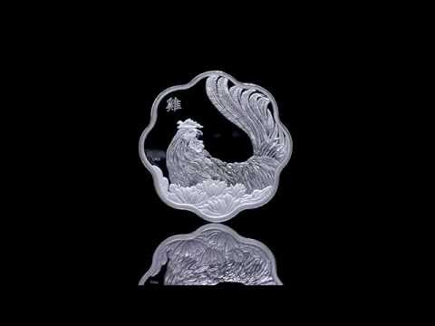 The unique scalloped shape is reminiscent of a lotus flower, while the design captures the essence of the rooster’s character. Mintage is limited to 13,888 pieces worldwide.