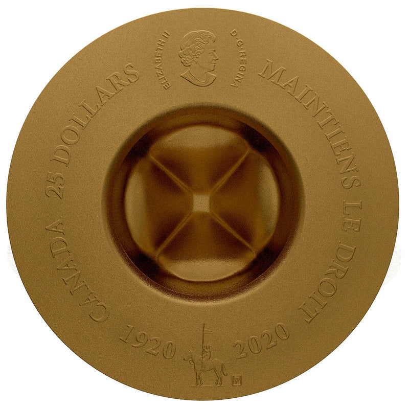 After an extended pandemic production delay, one of the most anticipated and innovative 2020 dated coins is finally ready for collectors. Marking the 100th anniversary of the new RCMP formed from the merger of the Dominion Police and the Northwest Mounted Police in 1920, this one and a half ounce fine silver coin is fully three dimensional and shaped like the iconic Mountie hat. Beneath the gold plating on the reverse, a special frosting captures the look of the hat’s felt material while brown gold plating colours the bronze band. Under the wide brim you will find the RCMP motto “MAINTIENS LE DROIT” (Defending the Law) with the commemorative double dates 1920 – 2020. Mintage is limited to 6,500 coins. HST/GST exempt.