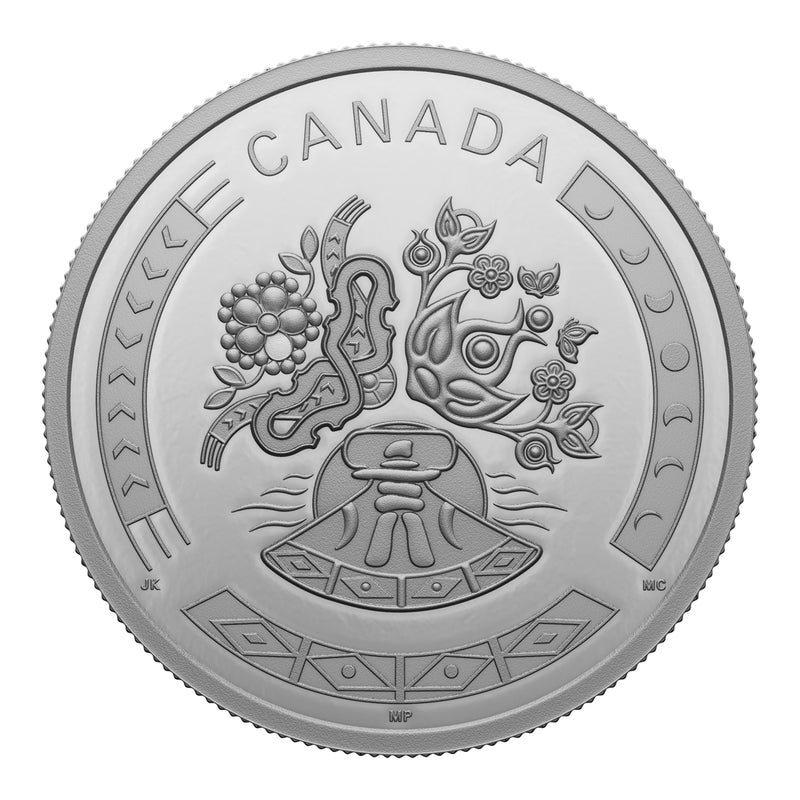 Celebrate First Nations, Inuit, and Métis art and cultures with this $20 fine silver coin issued to mark National Indigenous Peoples Day. The design combines the art of Megan Currie, English River First Nation, Myrna Pokiak, Inuvialuit Settlement Region and Jennine Krauchi, Red River Métis. Their joint creation stunningly combines their expressions of First Nations, Inuit, and Métis cultures, art and traditions and is an open invitation to celebrate National Indigenous Peoples Day. Mintage is limited to just 6,500 coins. HST/GST Exempt.