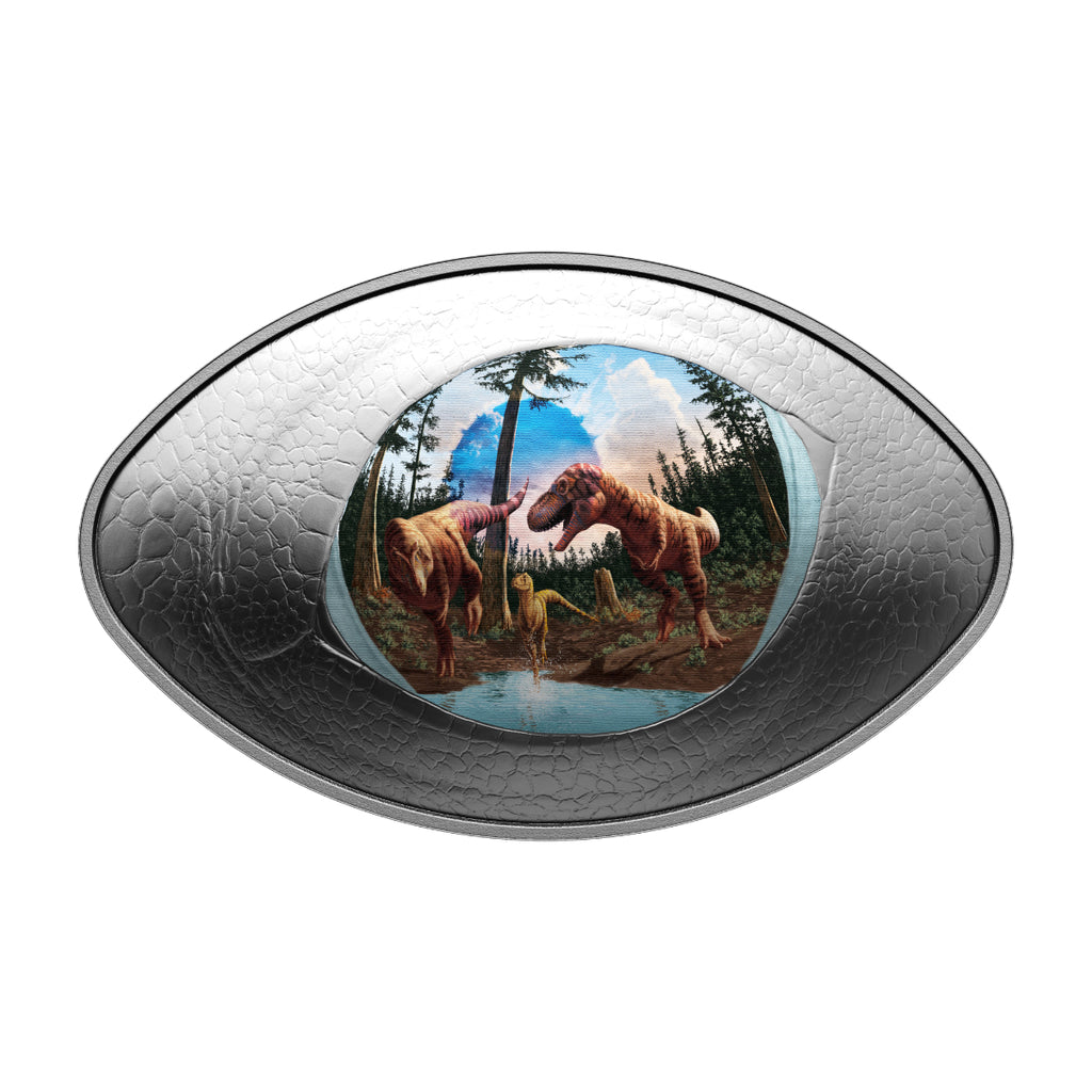Travel back to an age when dinosaurs ruled the Earth and see the world as they saw it! With each new fossil discovery, paleontologists are able to piece together new information about what the world looked like millions of years before us, and this oval-shaped coin presents a view of that long-gone reality. HST/GST Exempt.