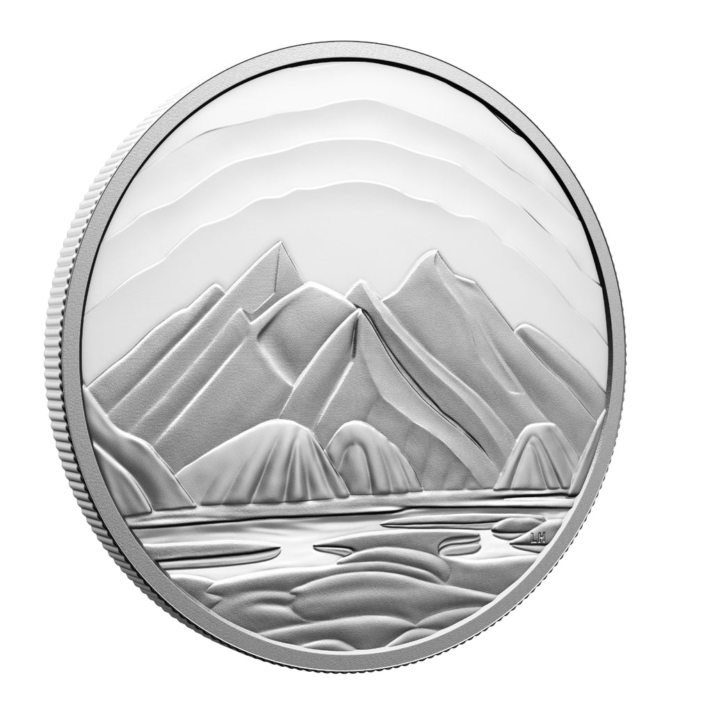 The scene is far from flat, and neither is this 99.99% pure silver version of it; the coin’s reverse places the focus on Harris’ bold lines and symmetrical composition, using various frostings and relief heights to mimic the original contrasts and forms that inspire reverence for nature in its purest form.